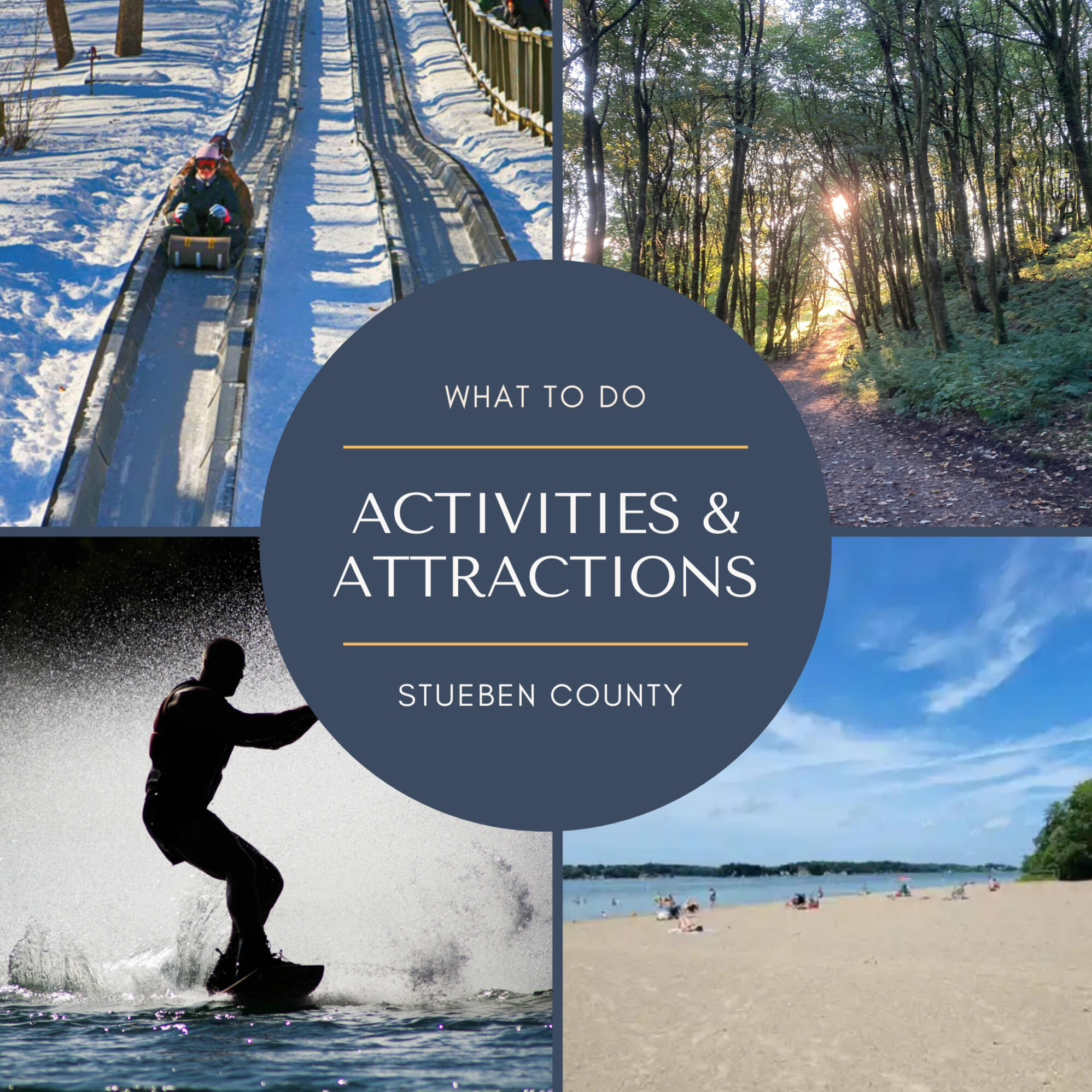 The Angola and Steuben County lake region is filled with family-friendly adventure in every season — from sunny beach days and boating on the Chain of Lakes to scenic park trails, charming downtown spots, and iconic winter thrills. Explore our guide below to start planning your getaway and see why lake life here is a favorite year-round.